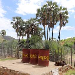 Was nicht wirklich funktioniert in Namibia: die Mülltrennung – es gibt zwar Tonnen, die mit „Metal“, „Plastic“, „Paper“ etc. beschriftet sind, aber wenn man dann reinschaut… Abgesehen davon haben wir in 2 Resorts der Namibia Wildlife Resorts (NWR) miterlebt, wie Arbeiter den Inhalt der einen Tonne einfach in die andere Tonne gekippt haben. Da ist noch Luft nach oben.