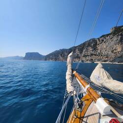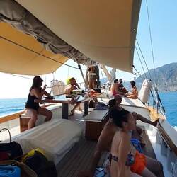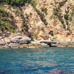 We motored south on the Dovesesto from Cala Gonone to Cala Goloritze (a UNESCO world heritage site). Spectacular. All of these beaches are only accessible by boat or foot (long hike). Brilliant staffもっと詳しく