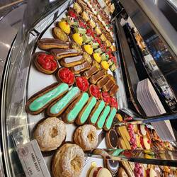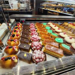 Galleries Lafayette Gourmet houses several pristine pastry counters where classic French pâtisserie is displayed with characteristic Parisian elegance. The selection ranges from precisely crafted macarons and éclairs to seasonal tartes, whilst respected chocolatiers showcase their pralines and truffles. The space combines retail efficiency with careful presentation, maintaining the department store's standards of quality and style.Read more