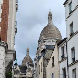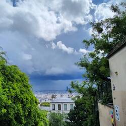 Walked between rainstorms to Montmartre and Sacré-Cœur Basilica. Getting some miles out of our raincoat purchase.