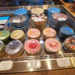 Organic Lebanese ice-cream on Henry Shiner's recommendation. Apricot & rose petal for me (Robin) and orange blossom, almond and pistachio for Ross. Delicious!