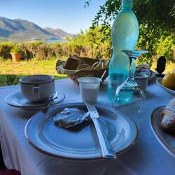 Another stunning start to the day. A splash, a goatherd and brekky with a view.