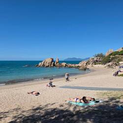 The sandy beach, mostly silica hence the colour, goes for kilometers. We put in a good half hour walking and didn'tRead more