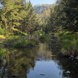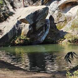 We had a swim at the Rock Pool, which was bloody refreshing after walking in the heat. The pool's formed by the creek and surrounded by those massive sandstone cliffs - a perfect spot to cool off and soak up the scenery. The water's surprisingly clear and cold, fed by springs further up the gorge.