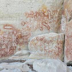 Our first walk took us to the Art Gallery and Amphitheatre. The Art Gallery is one of the most significant Aboriginal rock art sites in Queensland, with stencils and ochre paintings that date back thousands of years. Standing there looking at those hand stencils and animal outlines, you get a genuine sense of connection to the people who've been coming to this gorge for millennia. Worth the walk just for this.