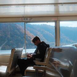 Woke up very early to catch a 3hr bus to lake Towada, and do the Oirase gorge walk. We thought we’d get to the bus platform early, so we could grab some food for the trip. As it’s fairly rural and we figured the food options would be limited. However, once we got to the bus platform, the was a queue that stretched and wrapped around the entirety of the station - easily 200m long. We thought surely not, this has to be for some other destination like the airport or something. Alas, no, it was the genuine queue for the bus to our destination. So, Liao and I rapidly joined the queue (Vivek opted not to join this outing, as he has a fear of boats and being on them) forgoing our hearty baked goods and drinks we had dreamed of purchasing for luncheon. While in line, we were rapidly researching hire car options, trying to calculate how long we would have to wait for another bus. As this service only runs 3 times a day, quite spaced out. Did we need an international drivers license? Rats! We did need one, well our only option was to sit tight, and hope that we somehow made it onto the bus, and put our faith in the Japanese public transportation system. As it turns out this trust was very well founded, as the Japanese ran an, on demand bus schedule, running as many coaches as required, to empty the queue for the time slot that the bus was intended to run for. We made it onto the very last bus and were even the very last 2 people allowed onto the bus. As we got onto the bus, every single seat was already filled however. Shit… looks like we’re standing for the next 3 hours, through some fairly mountainous terrain. But no! Again the Nippons deliver, they had seats connected to the aisle seat that folded down to form a sort of mini seat. While not as comfortable as a full seat, it sure beat standing. Driving through the mountain ranges to the lake, we were handed stunning views of alpine snow capped mountains, trees covered head to toe in snow above the snow line, snow along the road, and an absolutely stunning sea of yellow and red as the deciduous trees turned into their autumn colours. This sea of red and yellow spanned as far as the eye could see, which while probably normal for non Australians, I couldn’t stop gawking at it, the leaves falling in a majestic dance with the wind, reflecting golden light off the morning sun. We definitely picked a good time to go as the bus and ferry service stop for the year, 6 days after we went. With all the trees in full fledged de-leafing, these majestic colours would enthral me for the entire day.