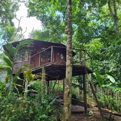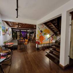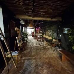 À noite nossa aventura continuou no "Bar Na Mata", um Café estilo Bistro temático lindamente decorado com artesanato local e com uma área externa com jardinagem que empresta uma atmosferaBaca lagi