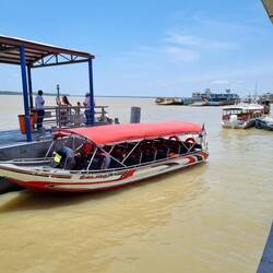 Hoje o passeio foi na Ilha de Combu. Saímos por volta das 11h00 da manhã de Belém e fomos para o pier de embarque.