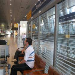 Chegada ao aeroporto de Frankfurt e embarque no trem para Amsterdam.
