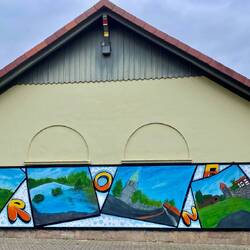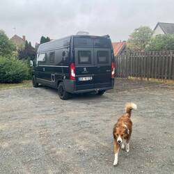 Hab nun jedoch an gleichnamiger Halle einen WoMoPlatz bezogen. Buddy findet die vielen Bäume hier ringsum superLäs mer