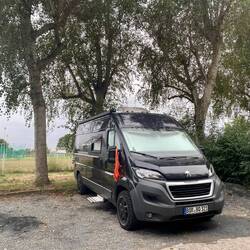 Ich hab mir einen Wohnmobil Stellplatz in Gronau ausgesucht. Der ist wenig spektakulär an einem Sportplatz.