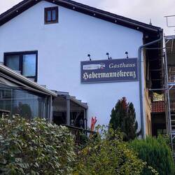 Am Restaurant Habermannskreuz kann man nicht nur sehr lecker und frisch essen, sondern auf schön angelegten Parzellen auch mit einem Wohnmobil übernachten.