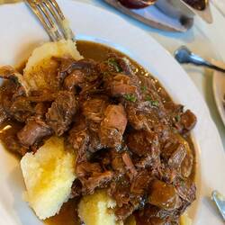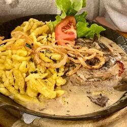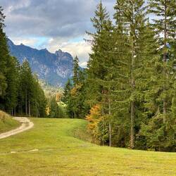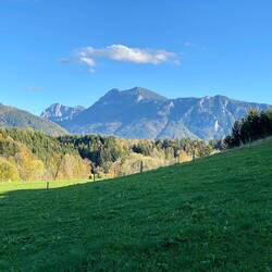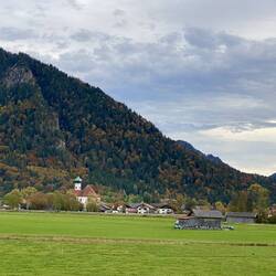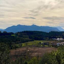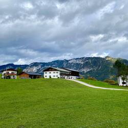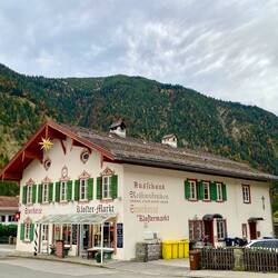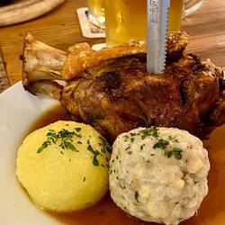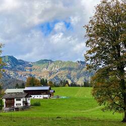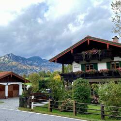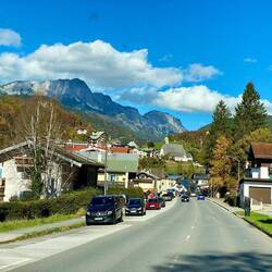 Wir fahren entlang der Alpen und erreichen die Chiemgauer Alpen. Wir nächtigen beim Hammerwirt. Hier essen wir eine Haxe vom lokalen Strohschwein.