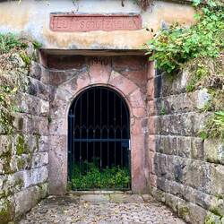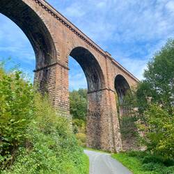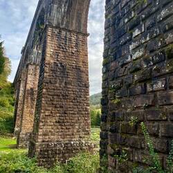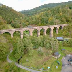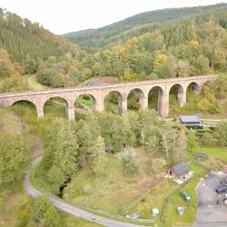 Das Haintalviadukt der Odenwaldbahn ist 173m lang und 32,5m hoch und aus Buntsandstein 1880 erbaut (https://de.wikipedia.org/wiki/Haintalviadukt)