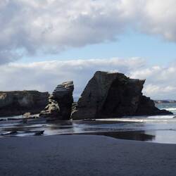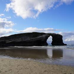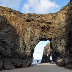 What an amazing beach! Praia das Catedrais only shows its full beauty at low tide, when the rugged rock formations are completely exposed and you can walk through stone arches.