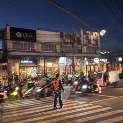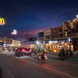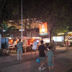 Sehr viel Verkehr und abends viel Betrieb mit Bars, Restaurants und Souvenirläden.