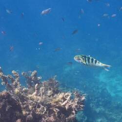 Bei Blue Star Dive Center buche ich eine Schnorcheltour. Entlang der Küste mit ca. fünf Meter Tiefe lasse ich mich mit der Strömung über die Korallen und Fische treiben. Es ist faszinierend, demLeggi altro