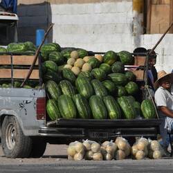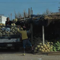 Auf der Fahrt zu den Dunas de Bilbao mache ich einen kurzen Stopp in Matamoros. Hier ist das Zentrum vom Melonen Anbau und jetzt ist Ernte Zeit. Ich wollte am Wegesrand 2-3 Melonen einkaufen, Doch derMeer informatie