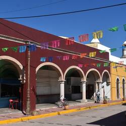 Im Gegensatz zu anderen historischen Städte gibt es hier in Patzcuaro keine bunten Häuser, hier sind alle einheitlich, unten rot und oben weiss. Auch gibt es keine Leuchtreklamen. Die GeschäfteMeer informatie