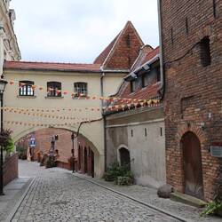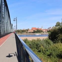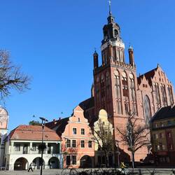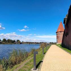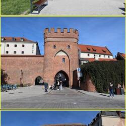 Etwas weiter unten an der Weichsel liegt Torun, eine alte Stadt, die zum UNESCO Weltkulturerbe gehört. Am Fluss entlang ist die alte Stadtmauer mit drei Toren.