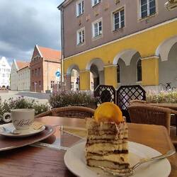 Am linken Ufer der Mottlau liegt die Altstadt Danzig mit all den schönen Stadttoren. Da gibt es die Kaiser Patisserie, ich kann euch sagen, es ist königlich…..