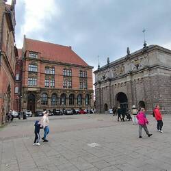 Durch das Grüne Tor betritt man die Langgasse oder Langer Markt. Die Gasse ist nicht so lang, nur 540 Meter. Doch hier sind all die berühmten Häuser der Stadt.