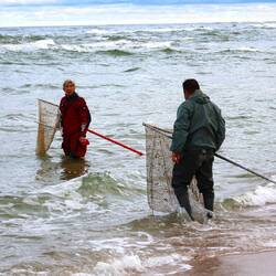 Am Strand von Rowy treffe ich Bernstein Fischer. Mit einem grossen Feumer kratzen sie den Boden im Meer ab und bringen den Fund an Land. Vor allem Laub, Holz und etwas Müll, der sauber aussortiertRead more