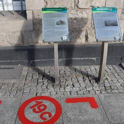 Ein Rundgang durch die Stettiner Altstadt. Das ist einfach hier, eine rote Linie führt zu all den Sehenswürdigkeiten, wie in vielen anderen Städten auch.