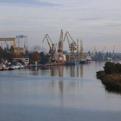Bei schönstem Herbstwetter, bei ca. 10 Grad fahre ich nach Elblag, eine schöne kleine Stadt am Ufer des gleichnamigen Flusses.