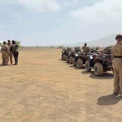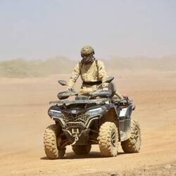 Im zweiten Drittel der Tour hat mein Quad #80 den Geist aufgegeben, Zündspule einfach abgerissen durch die harten Vibrationen während der Fahrt über die Lavabrocken. Um nicht in der Wüste zurückzubleiben, gab mir der Chief sein Quad #32 mit mehr Power für den Rest der Fahrt und ich war gerettet, er selber blieb mit dem havarierten Gefährt zurück übergab das Team an seinen Second Commander der uns sicher zur Basis zurückgebracht hat. Was aus dem Chief mit dem defekten Quad geworden ist, ich hoffe das Beste die Sonne steht senkrecht und bildet Fata Morgana’s in Sal’s Steinwüste.
