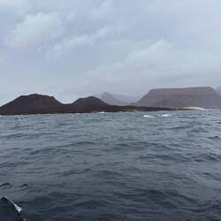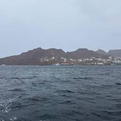 Wir heben den Anker noch im Dunklen vor sechs Uhr und tuckern mit Motor aus der Bucht vor Tarrafal.