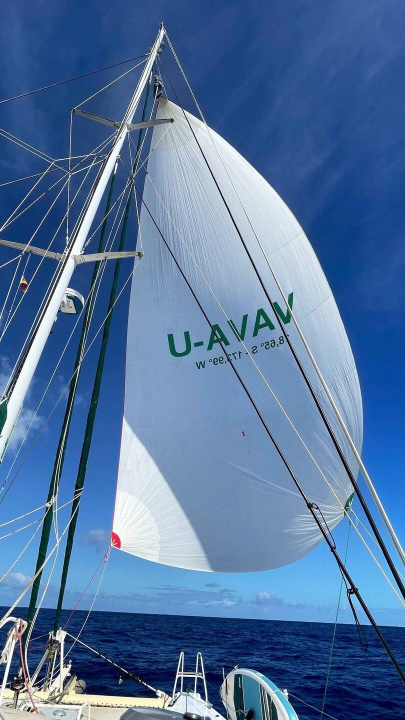 Unsere VAVA-U zieht am ersten Tag mit im Schnitt 7,8 kt und Kurs 250° bei leicht bewölktem Himmel durch den Pazifik.