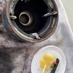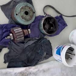 Der defekte Motor hat mit 70.000sm seinen Dienst getan und wird demontiert zur näheren Bestimmung der Ausfallursache. Mit Bordmitteln wird der Motor instandgesetzt und betriebsbereit als Ersatzmotor eingelagert.