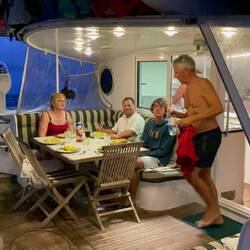Feucht&nass ist’s in der Plicht - also verkriecht man sich ausserhalb der Dienstzeit in den Salon oder die Kajüte.