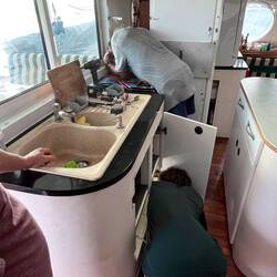 Mit dem Einbau einer neuen Geschirrspülmaschine sind am Nachmittag nochmals Konzentration und handwerkliches Geschick gefragt und am Abend kehren wir gemeinsam vor dem morgigen Ablegen nach Australien im Restaurant Le Bout du Monde zum Abendessen ein.