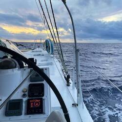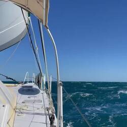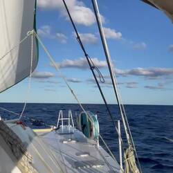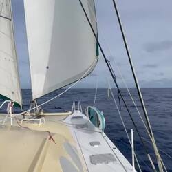 Der Wind lässt nach und unsere Geschwindigkeit reduziert sich auf 4-6kt bei vollem Großsegel und Genuasegel.
