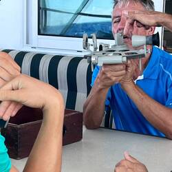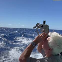 Nach der provisorischen Reparatur der Kurzwellenantenne wird heute zur genauen Positionsbestimmung ein Schulungstag von Skipper Martin mit dem Sextant eingelegt.