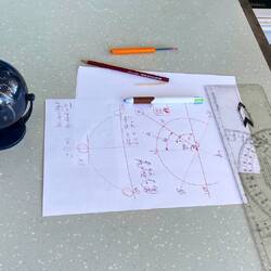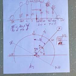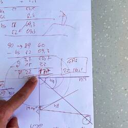 Die Mittagssonnenwende wurde um 12:25 Uhr festgestellt und der dazugehörige Winkel für unsere Mittagsbreite abgelesen. Nach Korrekturberechnungen mit den Werten aus der Deklinationstabelle für den 03. Mai auf der Südhalbkugel, erhalten wir den Positionswert für unseren mittäglichen Breitengrad von 22°17,7’S Sextant gemessen. Nach der Gegenkontrolle mit dem GPS-Wert 22°16,1’S stellen wir eine Abweichung von 1,6’ Minuten fest.