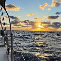 Um Mitternacht startend, gibt uns der Südostpassat mit 16-22kt Wind den Start für einen großartigen Segeltag.