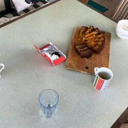 Nachmittags wird frischgebackener Kürbiskuchen zum Kaffee aufgetischt und die Mehlbestände in frisches Brot umgesetzt, da diese nicht der australischen Biosecurity in die Hände fallen sollen.