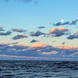 Mit dem Vollmond im Rücken ziehen wir in voller Fahrt nach Westen, es wird Nacht inklusive blinder Passagiere auf dem Bug.