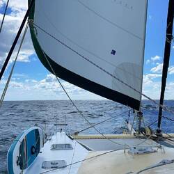 Bei gleichbleibender Fahrt mit 6,5kt kommen wir morgen früh an der Südspitze Neukaledoniens an und wollen Nachmittags in Noumea in Quarantäne Ankern.