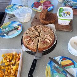 Zur gelungenen Reparatur gibt es am Nachmittag frisch gebacken Apfelkuchen mit Rumsahnehäubchen.
