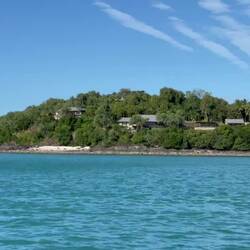 Die Insel sieht von weitem erschlossen aus und hat mit einem Anlegersteg, eigenem Flugplatz und einem Ressort alles was es zu einem Landgang braucht.