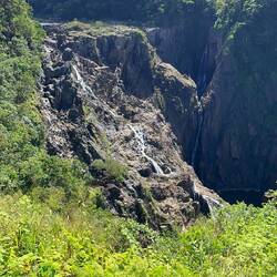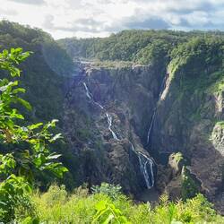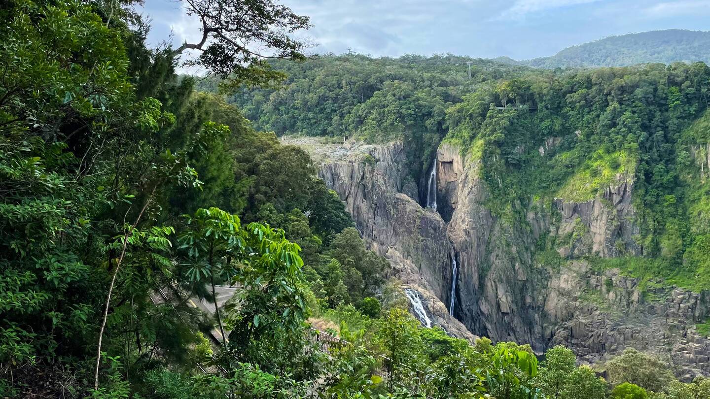 Die Barron Falls Wasserfälle werden durch einen Staudamm in der Menge reguliert um Strom zu erzeugen und gleichzeitig für die Touristen das gewünschte Motiv zu bieten.