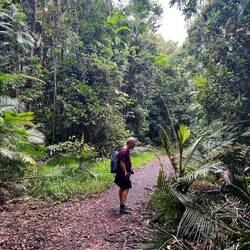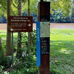 Nach der Ankunft in der Kuranda Railway Station wandern wir abseits der Touristenstrecke am Barron River entlang, mit der Hoffnung dort Salzwasserkrokodile zu sehen. Ergebnis kein einziges gesichtet, aber am Wegesrand treffen wir deutsche Auswanderer, die uns nach kurzem Gespräch stolz auf ihrer Kamera die Krokodile im River zeigen. Es gibt sie also doch, wir sind ganz nah dran.
