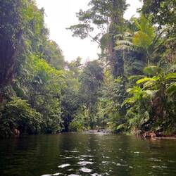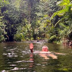 Nach diesem Erlebnis, alle sind noch ganz aufgeregt von den Eindrücken, ist unser nächstes Ziel das Mason’s Swimming Hole mitten im Regenwald. Dort baden wir in einem kleinen glasklaren Fluss der sich durch die Berge des Daintree Rainforest windet.