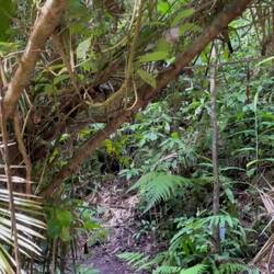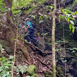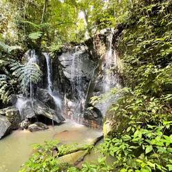 Der Anmarsch zu den Wasserfällen verläuft mitten durch den Regenwald und der Weg zu den Fällen wird immer dichter und beschwerlicher, eine Machete wäre das richtige Werkzeug gewesen auf unserem Weg aber hatten wir leider nicht dabei. Der Pfad im Dschungel war nur an Spuren im Boden zu erkennen und hatte nur 10-20cm Breite. Nach vorne zu schauen bei dichtem Bewuchs hätte uns vom Weg abgebracht und im steilen Gelände geht es da auch mal 20 Meter nach unten.