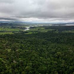 Wir fahren vormittags nach Daintree Village für eine Bootstour auf dem Daintree River. Das ortsansässige Unternehmen Crocodile Express Daintree River Cruises ist bekannt dafür, mit ortskundigen Bootsführern die Salzwasserkrokodile im Regenwald aufzustöbern.