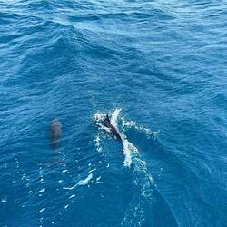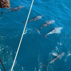 Der Tag beginnt mit dem Spiel der Delphine am Bug der VAVA-U und nach der Rundung von Cape Direction Ankern wie am Mittag in der riesigen Lloyds Bay.